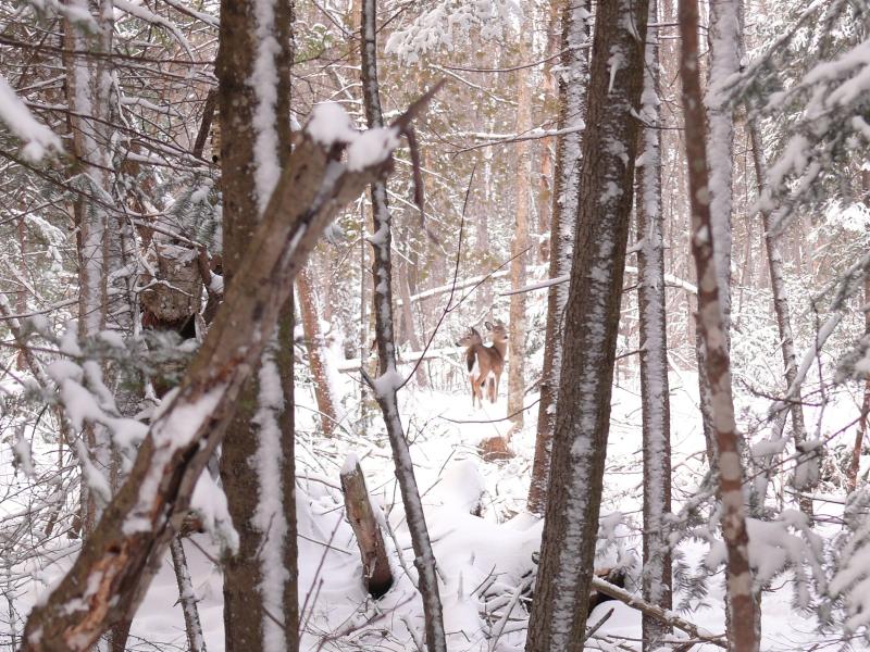 Il a fallu attendre le deux mars 2007 pour avoir la première vrai tempête de l’hiver... qui nous a permis de faire de belles photos de chevreuils dans une piste à proximité de la résidence de tourisme du Val à l’âne.