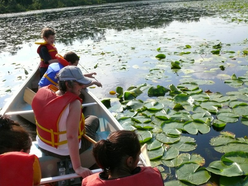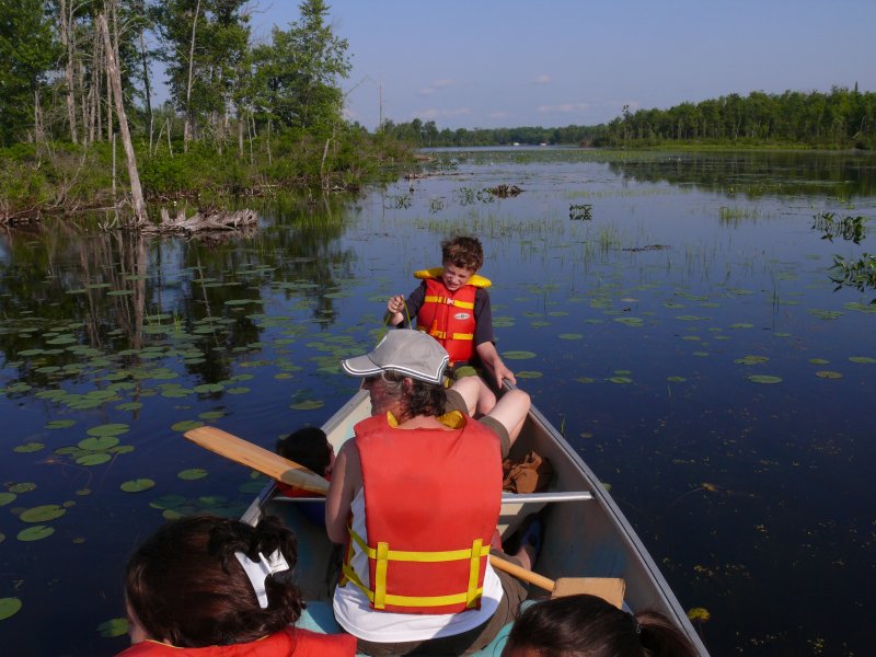 Nous avons vu des hérons, observé un cerf de virginie, des limicoles, un groupe de 4 martins pêcheurs énervés qui criaient en tous sens en un ballet aérien acrobatique. Mais le plus surprenant a été trois rencontres avec 4 castors. Un a tapé la queue dans l’eau avec un splash énorme pour prévenir les copains de notre arrivée. Les autres ont étés plus sociables. Chaque fois, ils étaient loin. Chaque fois, on a arrêté le canoë pour les observer en silence. Chaque fois, ils sont venus vers nous, très prés, passant à moins d’un mètre du bateau. Habituellement, ils nous fuient. Étonnant non ? Étonnant et merveilleux.