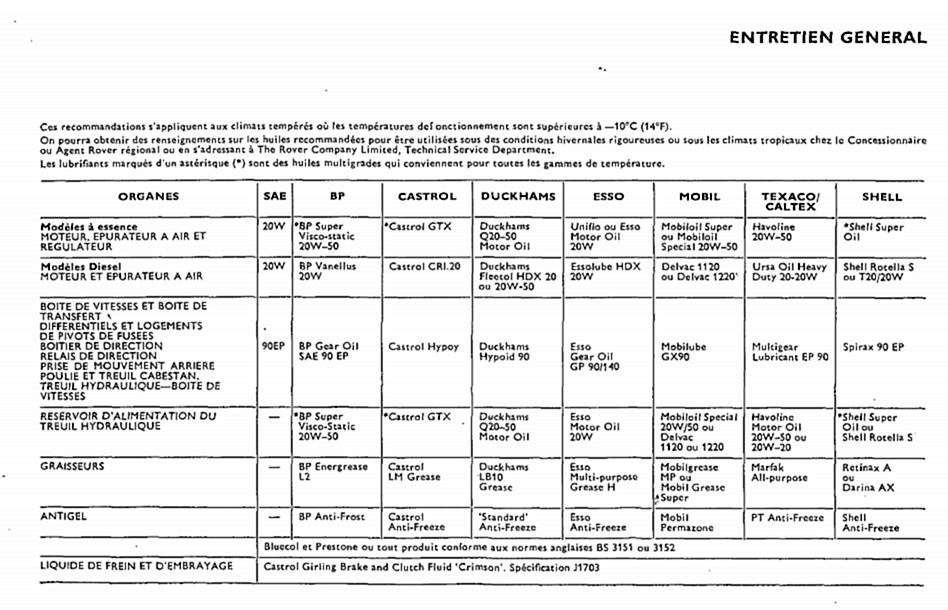 | Différentiel SALISBURY | 2.5 LITRES | 5000 km ou trois mois |