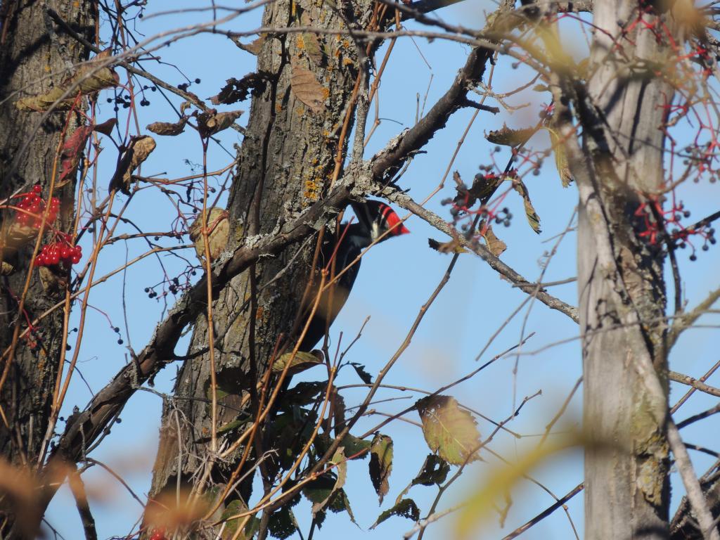 Le 12 octobre 2013, alors que nous nous promenions à vélo, nous avons eu la chance d’observer un Grand Pic, dryocopus pileatus, qui se gavait de baies le long de la piste cyclable.