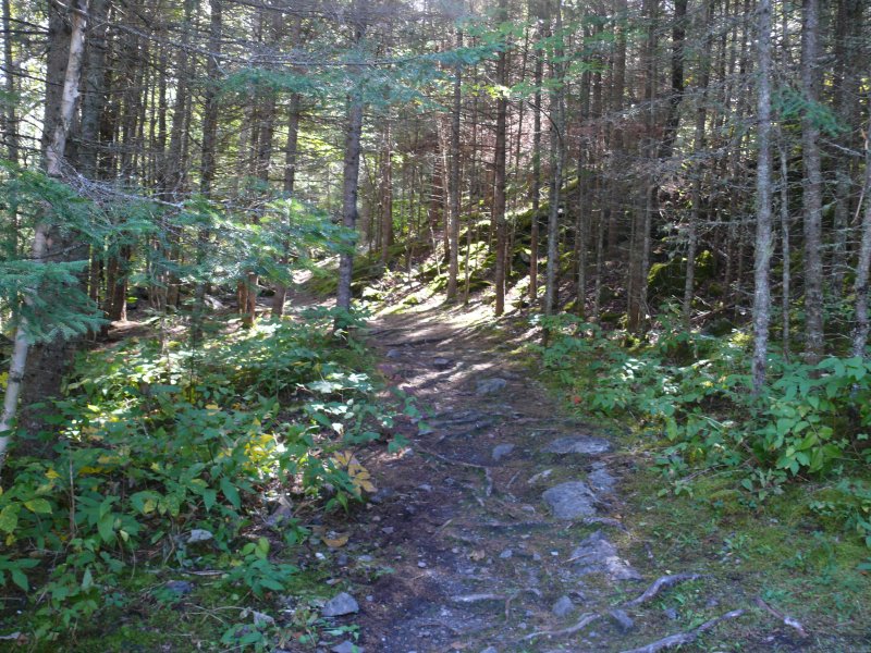 Le chemin arrive à deux aires de camping au bas du rapide. Le paysage est très joli.