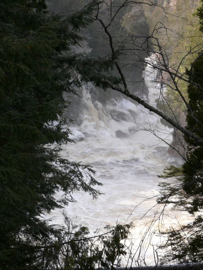 Le courant était fort, le vent également ! Nous avons descendu le petit rapide, presque inexistant en été au-dessus du quai. Ça a bougé fort. Une main invisible nous a secouée en tous sens en en bas du rapide, le kayak a fait une tête à queue imprévisible ! Je ne l’ai pas vu arrivé !