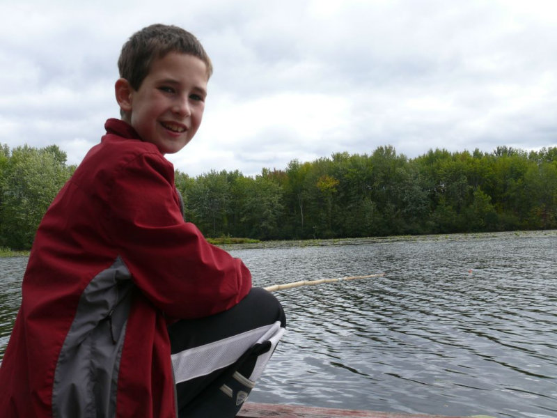 Antoine pêche à la ligne au vers.