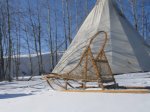 Mon grand tipi, 24 pieds soit 7m30 de diamètre, c’est déchiré lors d’une tempête cet automne.