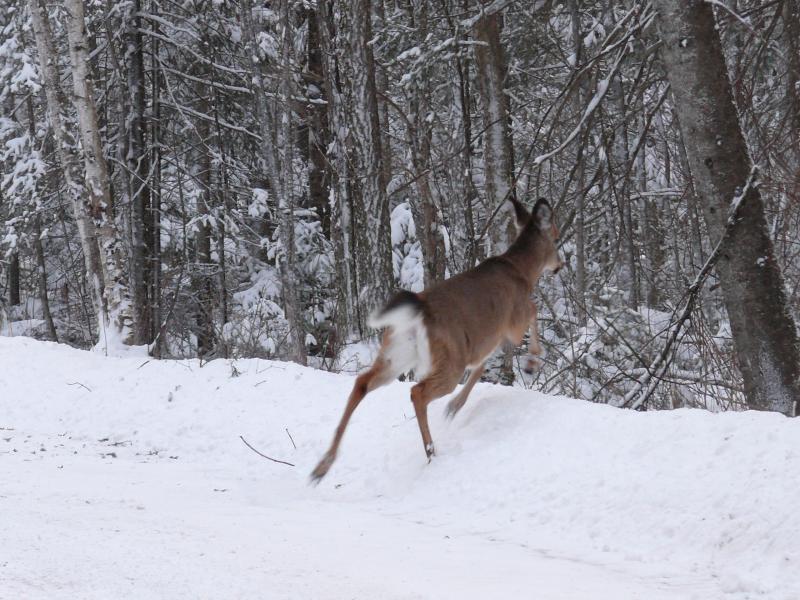 Il a fallu attendre le deux mars 2007 pour avoir la première vrai tempête de l’hiver... qui nous a permis de faire de belles photos de chevreuils dans une piste à proximité de la résidence de tourisme du Val à l’âne.