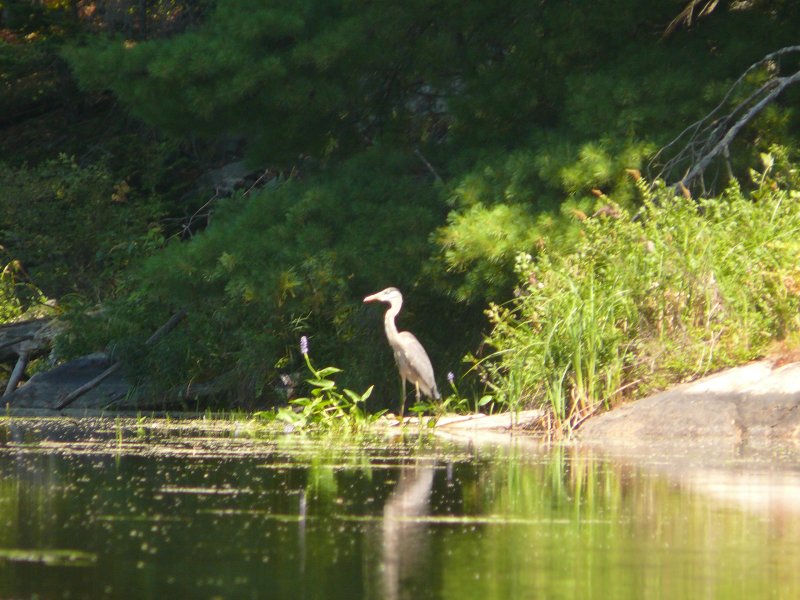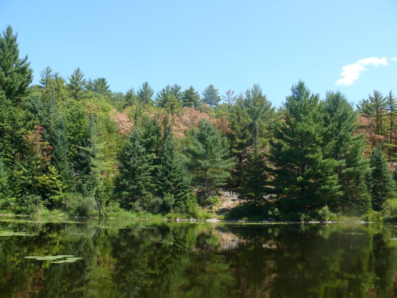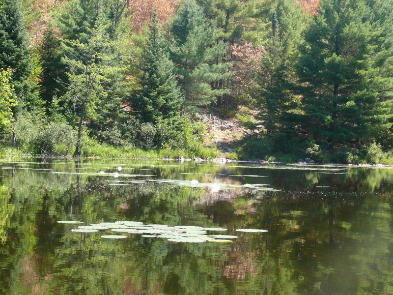 Les chênes sont couverts de glands et les écureuils font des provisions pour l’hiver. En deux heures de marche, j’ai vu plus de 20 écureuils roux et des tamias. On c’est arrêté sous un grand chêne pour observer un écureuil agacé par notre présence qui a essayé de nous intimider par ses cris. Voyant que cela ne marchait pas, il nous a lancé des glands... un peu plus loin 5 geais bleu se gavaient de baies. On a vu deux hérons, des traces de lapins, des traces de renard et de coyote, 8 urubus qui tournoyaient dans le ciel, un couleuvre rayée, un grenouille suicidaire qui attendait de se faire écraser sur un chemin et que nous avons remis dans un champ. Il y a encore des fleurs, des papillons monarque et dans un ruisseau on a observé des quantités de ménés. Hélas les grands animaux, cerf de Virginie, dindons sauvages, autrefois abondant ont été décimés par la chasse et on en voit plus.