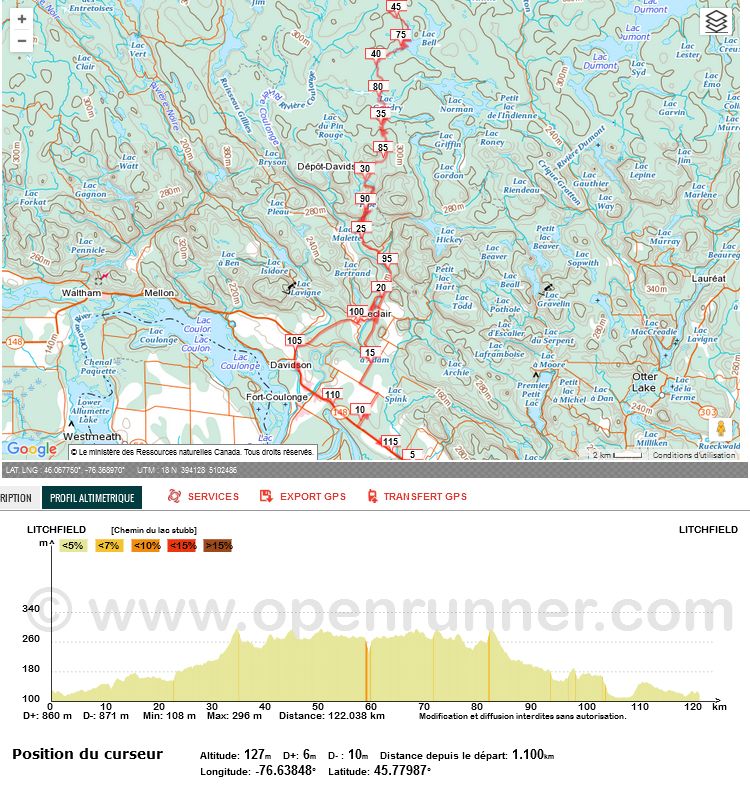 Des arbres tombés peuvent obstruer la piste et des barrages de castor céder et raviner la piste.