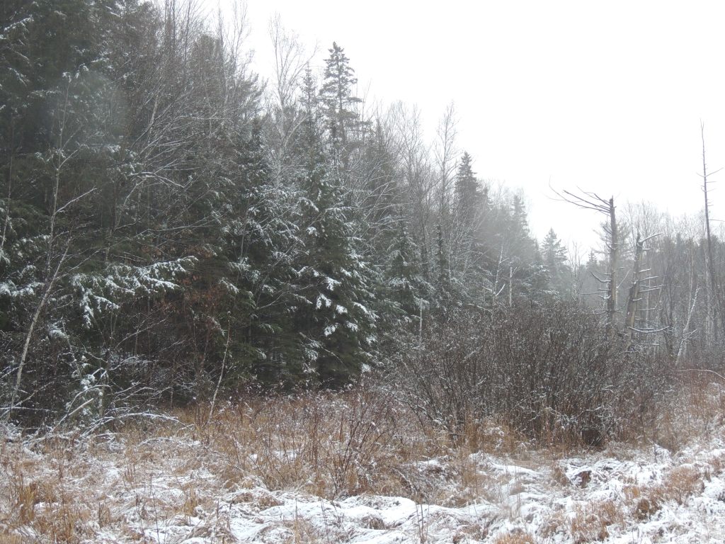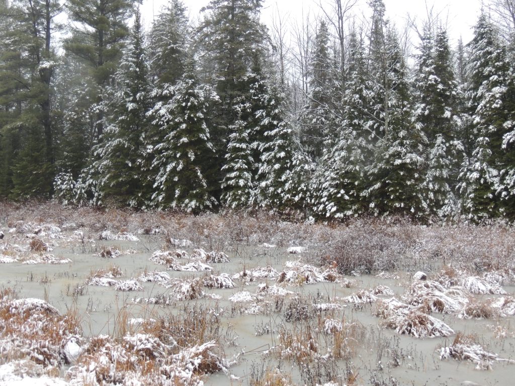 Les arbres, les plantes sont couvertes de neige et au fur à mesure que l’on progresse, la pluie lave les branches les plus fines et tout devient gris, tout deviens sombre.