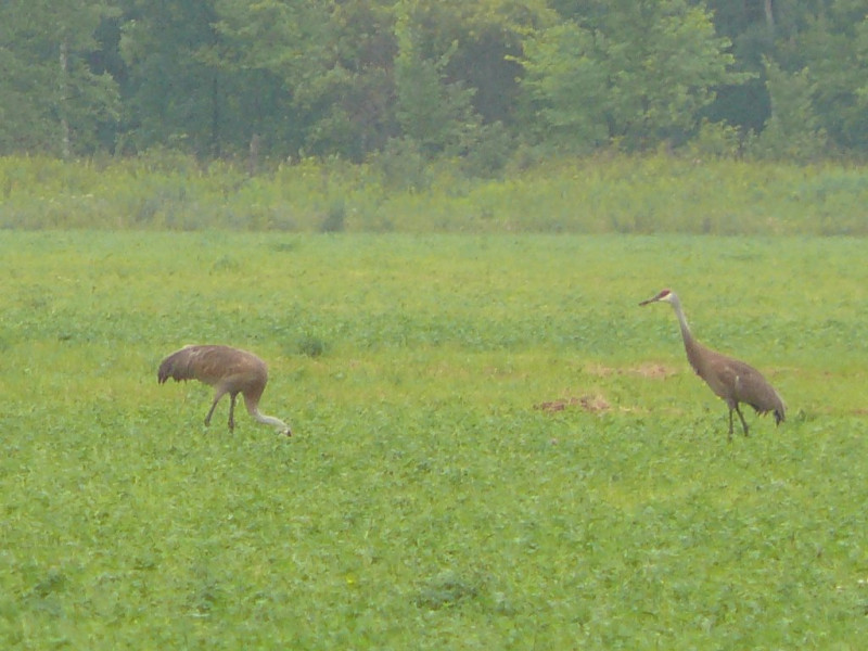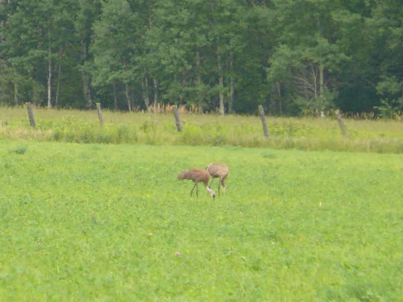 Le 17 juillet 2008, puis le 18, je les revois au même endroit, cette fois elles ne sont que deux. Les grues sont à un bon 200, 250 mètres minimum et s’éloignent en marchant dès qu’elles nous voient. Pour ne pas les effrayer, on arrête le disco sur le bord de la piste et on prend les photos au téléobjectif.