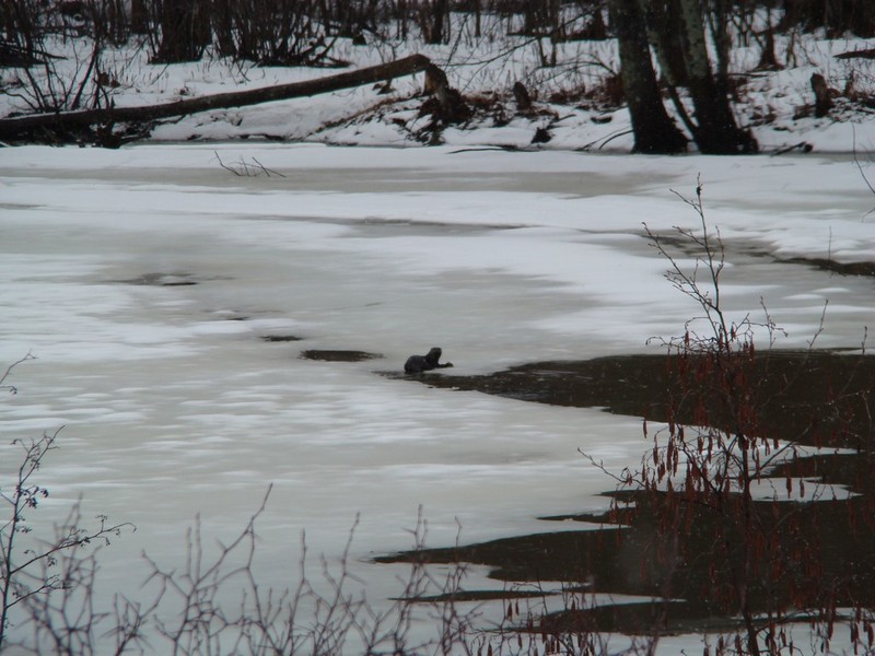 tous les ans, à la fonte des glaces, la nature s’éveille et on peut observer de nombreuses espèces difficiles à apercevoir en temps normal. La rivière est encore partiellement gelée. Les loutres chassent et montent sur la glace pour dévorer leur repas.