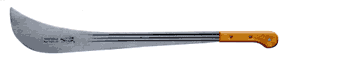 Mon modèle préféré ne figure pas sur les photos ci-dessus. De marque Martingale, elle ressemble à la machette brésilienne, elle est plus effilée près du manche, le manche est mieux fini et plus confortable et elle est fabriquée en Angleterre. Mieux équilibrée, elle tient mieux en main, elle est plus précise et son acier est de bien meilleure qualité que les Brésiliennes. La partie pleine de la lame est rainurée. Pour moi, c’est la machette parfaite, celle du connaisseur. Plus légère, plus maniable, plus efficace, moins fatigante, je l’utilise toujours en priorité. Il existe tout une gamme de machette mais la plus efficace est celle de lagamme 32 L. Elle ressemble à la machette ci-dessous :