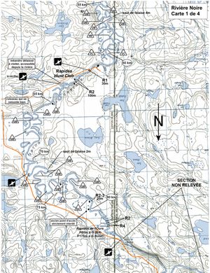 La rivière Noire est une destination idéale pour faire du canoë en famille ou pour débuter. Elle est considérée comme une rivière de difficulté moyenne en canoë. Pour ceux qui ne désirent faire une balade d’une journée, il est possible de partir de l’Auberge de la rivière Noire jusqu’au barrage. La rivière y est paisible, il n’y a que quelques petits rapides au départ puis elle serpente, fait moult méandres, et il est aisé de se laisser porter par le courant sans trop se fatiguer et de pique-niquer sur des plages sur la première partie du trajet. Ensuite, la rivière entre dans le lac de barrage et l’on arrive dans une zone complètement différente avec de beaux marais et des espaces beaucoup plus ouverts et moins de courant, il faut pagayer pour avancer....