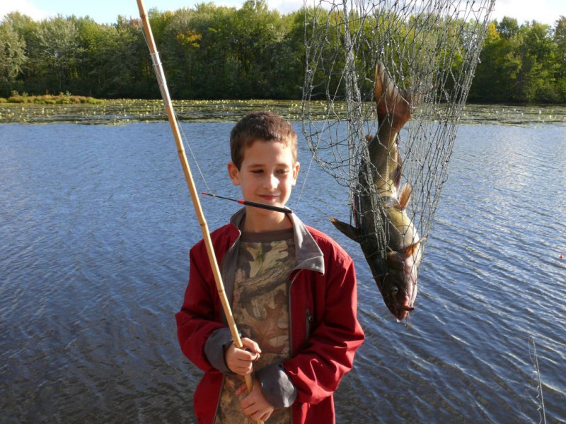 Ensuite c’est le tour d’Antoine. Avec sa canne en bambou à 1 $, il attrape une très belle barbue de rivière. La bataille fût homérique... !