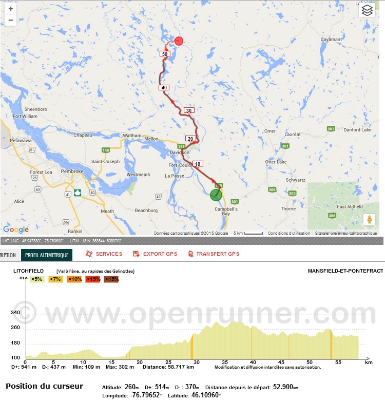 La rivière Coulonge est parsemée de beaux rapides accessibles en voiture à condition de posséder un 4x4 indestructible pour affronter le terrible chemin du Bois franc en tôle ondulé, digne des pires pistes africaines et destructeur d’échappement et de suspensions... nous l’avons pris cet été, il était très cassant, nous avons fissuré le collecteur d’échappement et cassé un tube d’échappement sur notre discovery. On connait des Ford qui ont coupé leurs châssis, perdu échappement, cassés des suspensions...