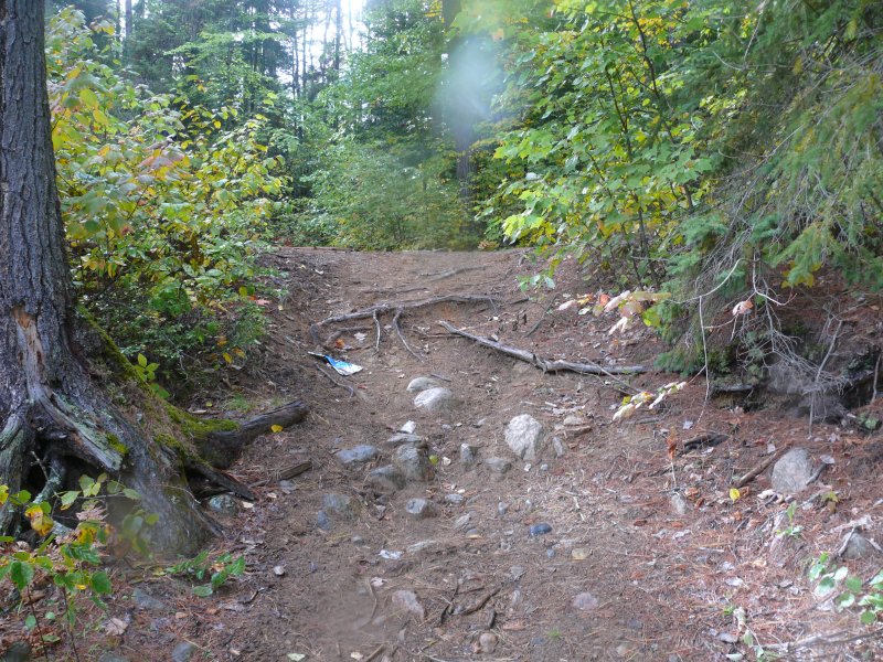 Nous roulons avec le GPS. Nous cherchons un chemin au bout du lac Jim, qui passe entre le lac Jim et le lac Galarneau.
