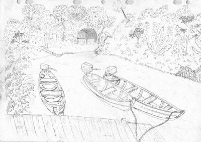Lors de l’expédition, Monique a sorti son carnet de croquis et comme les explorateurs du XIX, elle a illustré ce quelle voyait avec ses crayons. Quelques dessins réalisées à Trois Sauts.