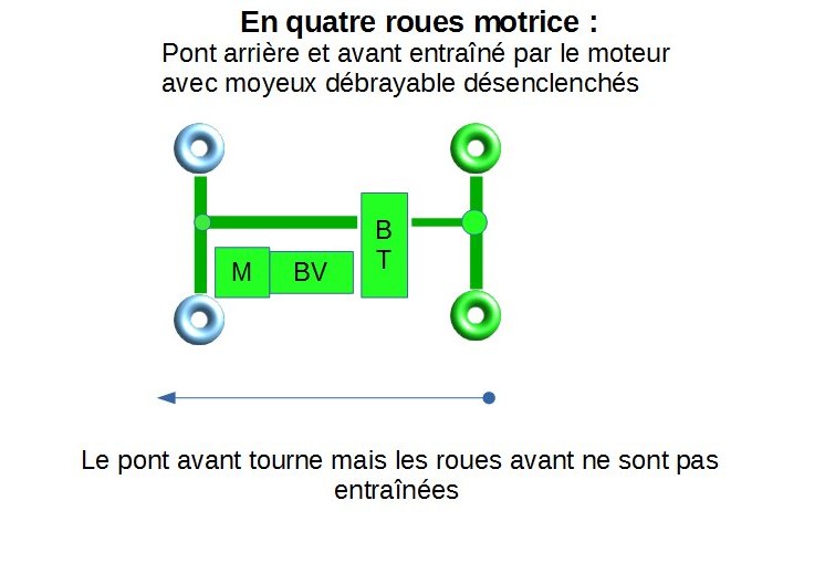Montés sur le pont avant, en position débrayée, ils permettent d’éviter au pont avant d’être en prise inutilement lorsque le véhicule est en 2 roues motrices. Cela diminue la consommation d’essence (dans mon cas 2l aux cents), la direction est plus douce et manoeuvrer est plus facile ! Cela permet également de débrayer le pont lors d’une casse de différentiel ou d’arbre de roue.