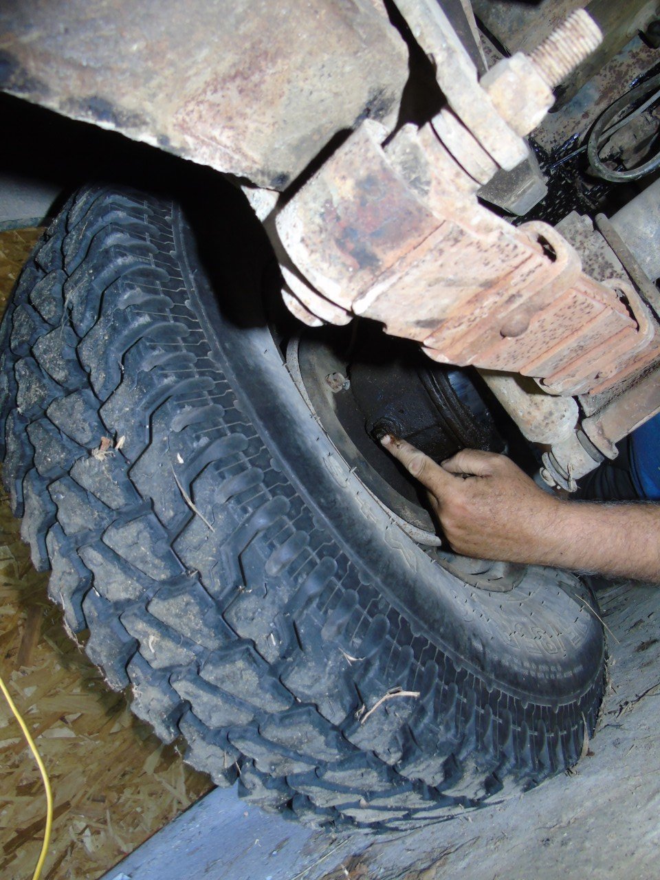 • Il faut se coucher sous le land coté passager devant la roue arrière.