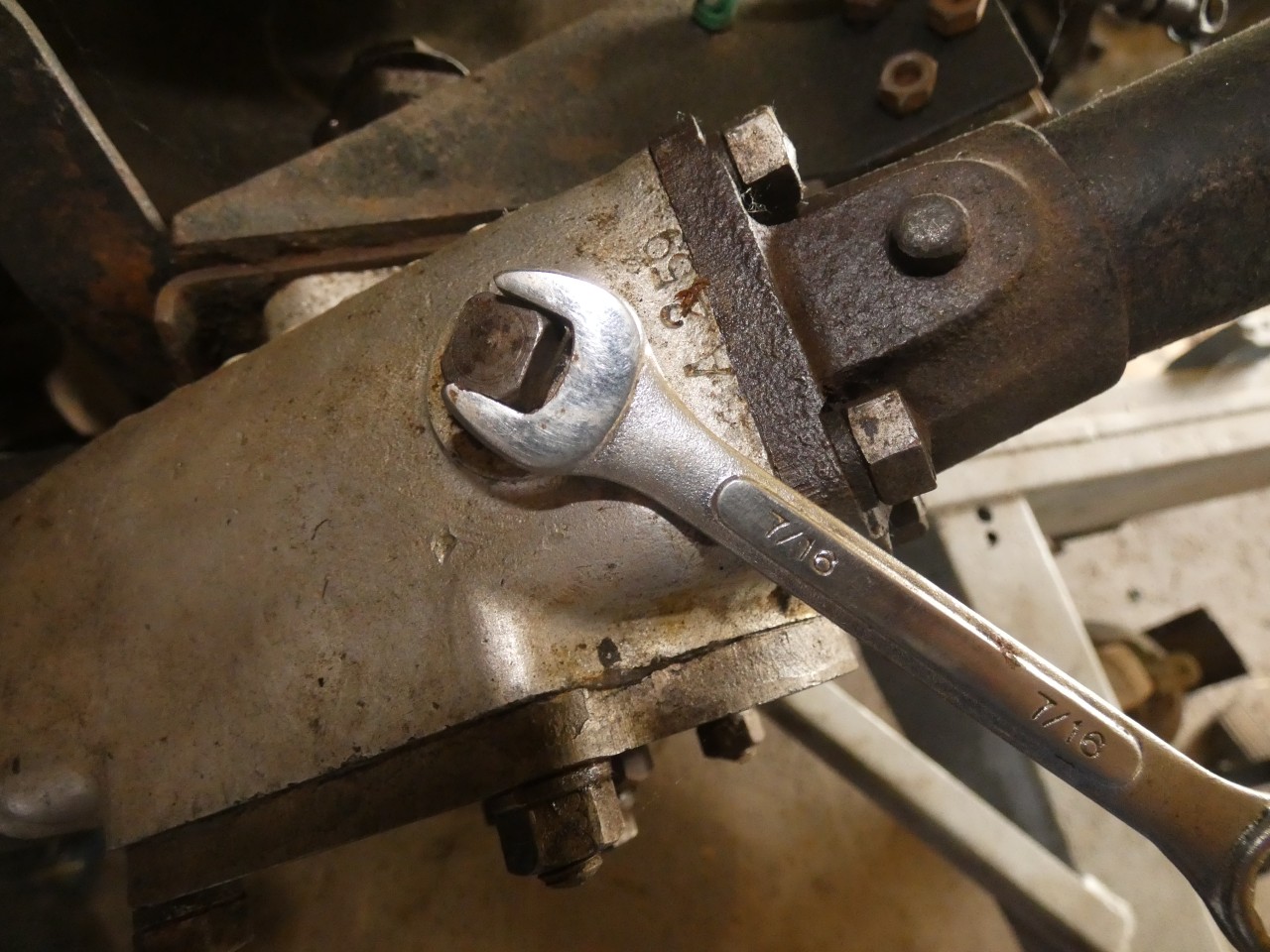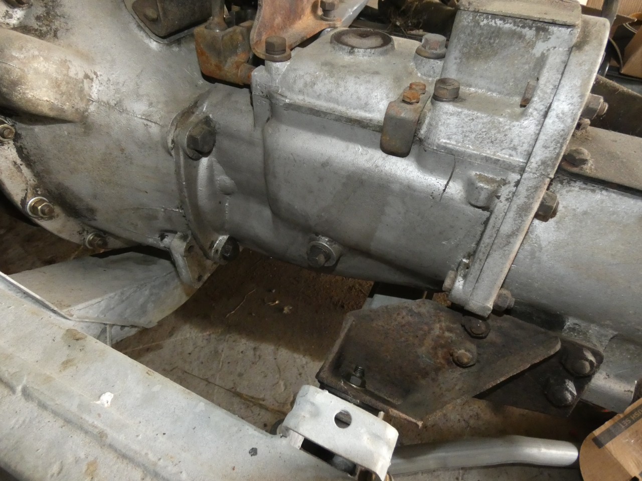 • Il faut se coucher sous le land, à l’aplomb de la portière coté conducteur. On y voit la traverse de la boite de vitesse. Le bouchon de contrôle du niveau se trouve à mi-hauteur sur la boite de vitesse coté moteur de la traverse.
