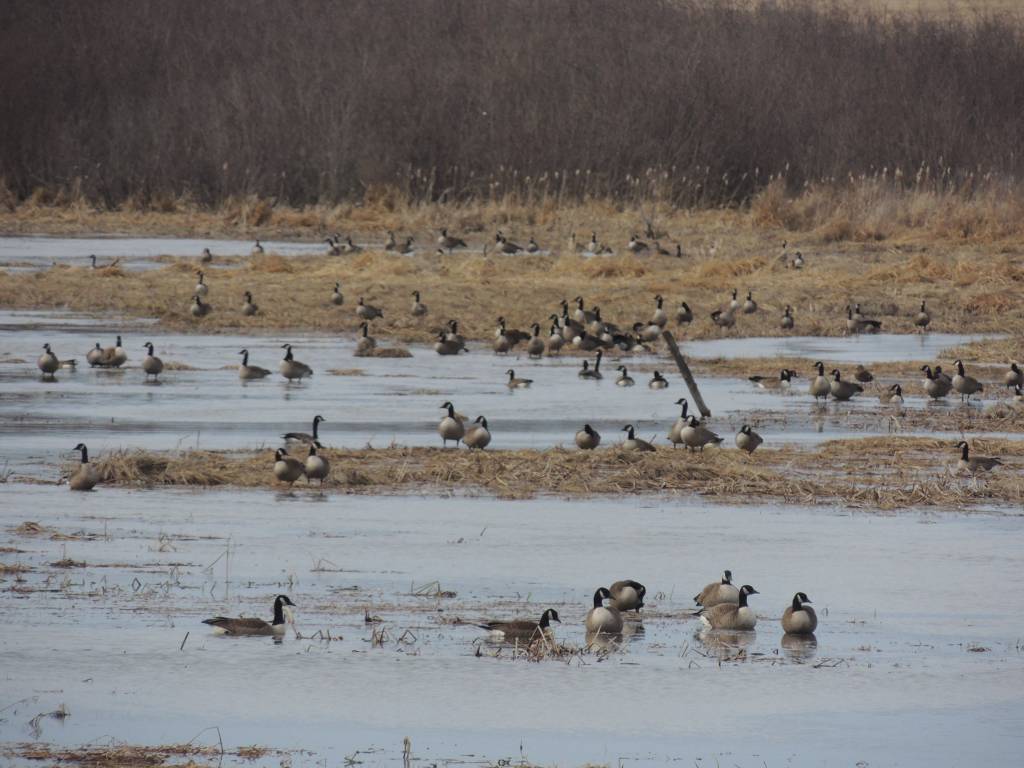 Hier et aujourd’hui, j’ai vu des bernache du Canada, un carouge à épaulette qui esquissait une danse nuptiale, des canards colvert, des merles... Il fait moins 15 la nuit, la fonte des neiges a cessée, la boue a disparu, les rivières et ruisseaux regèlent la nuit et une partie de la journée.